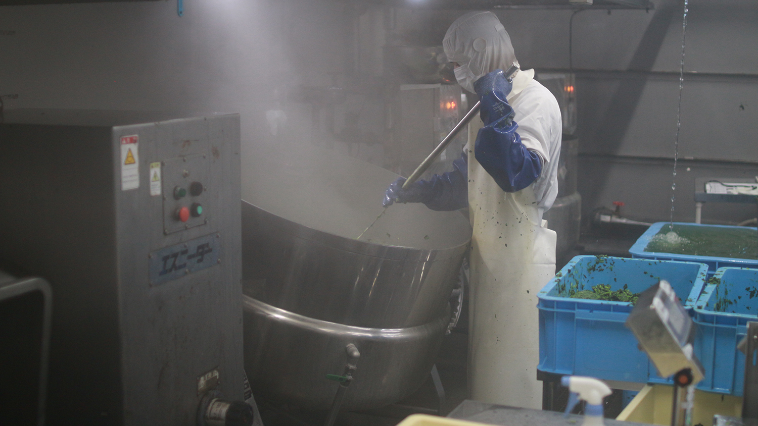 勿論、こうした取り組みは作業環境の整備だけではなく、商品の安全・安心を高めるために、作業工程の中でも原料・商品の洗浄、殺菌、選別を行っております。
