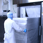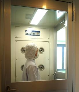 エアシャワー・粘着ローラー・手洗い消毒を経て、清潔な状態で作業場に入ります。