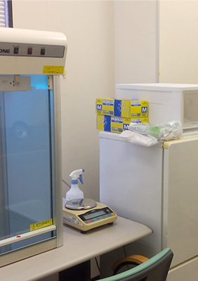 消毒液や手袋などを常備し、清潔な環境を保っています。